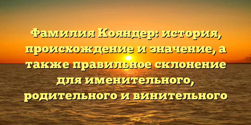 - Фамилия Кояндер: история, происхождение и значение – как правильно склонять в разных падежах