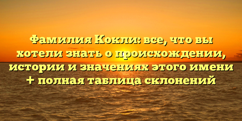 Фамилия Кокли: история, происхождение и значения имени + полная таблица склонений для генеалогических исследований