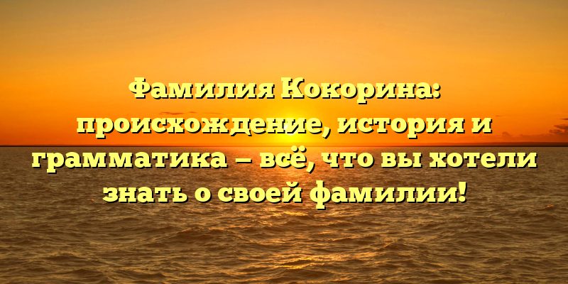 В этой статье мы расскажем вам всё, что нужно знать о фамилии Кокорина — от её происхождения до грамматики использования.