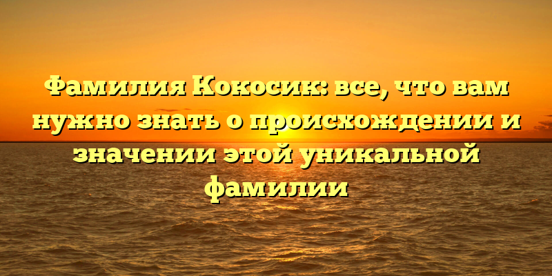 - Расширьте свой кругозор: история фамилии Кокосик и ее значение в наши дни