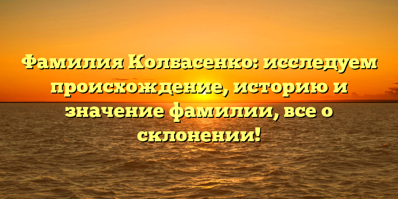 - Узнайте все о происхождении и значении фамилии Колбасенко: полная история и правила склонения