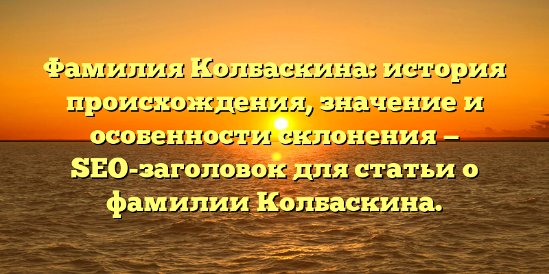 - Фамилия Колбаскина: происхождение, значение и склонение. Все, что нужно знать о фамилии Колбаскина.