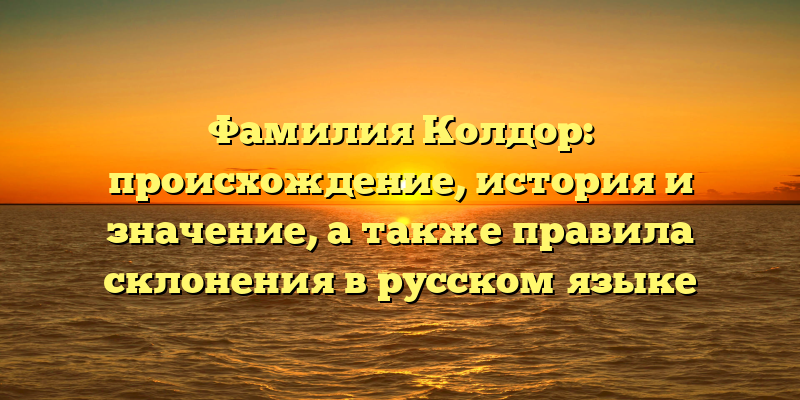 - Колдор: происхождение, история и правила склонения в русском языке — все, что нужно знать о фамилии