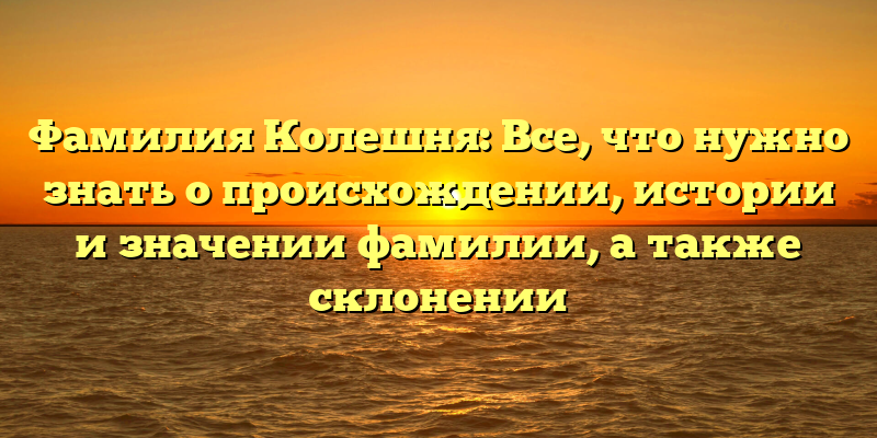 Исследуем происхождение и историю фамилии Колешня: полное руководство по склонению и значению в названии статьи.