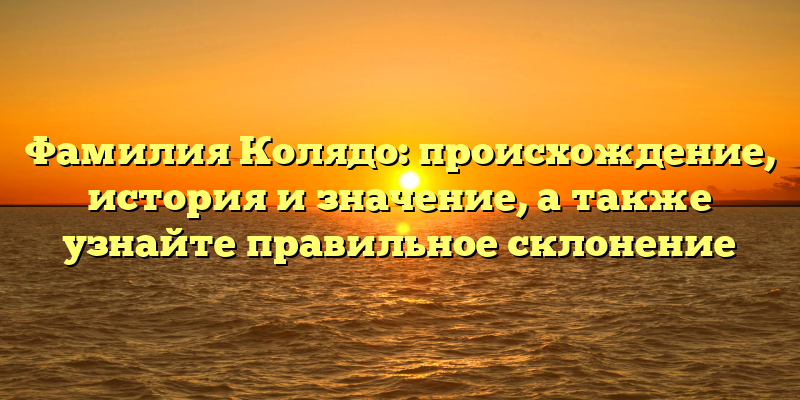- Загадочная история фамилии Колядо: происхождение, значение и правильное склонение для вашего имени