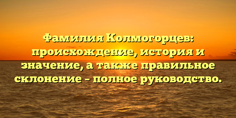 - Изучаем происхождение и значение фамилии Колмогорцев: советы по правильному склонению в нашем полном руководстве