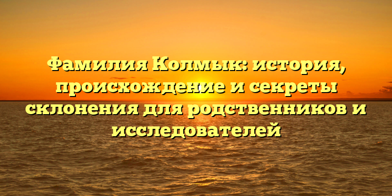- Фамилия Колмык: откуда она происходит и как правильно склонять – исследование для родственников и генеалогов