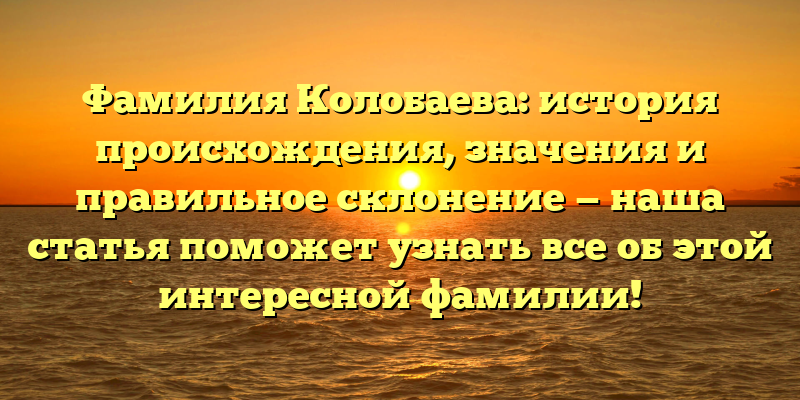 - Изучаем фамилию Колобаева: история, значения и правила склонения в одной статье!