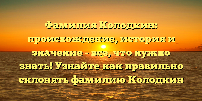 - Фамилия Колодкин: история происхождения и ее значение. Как правильно склонять фамилию Колодкин? Узнайте в нашей статье.