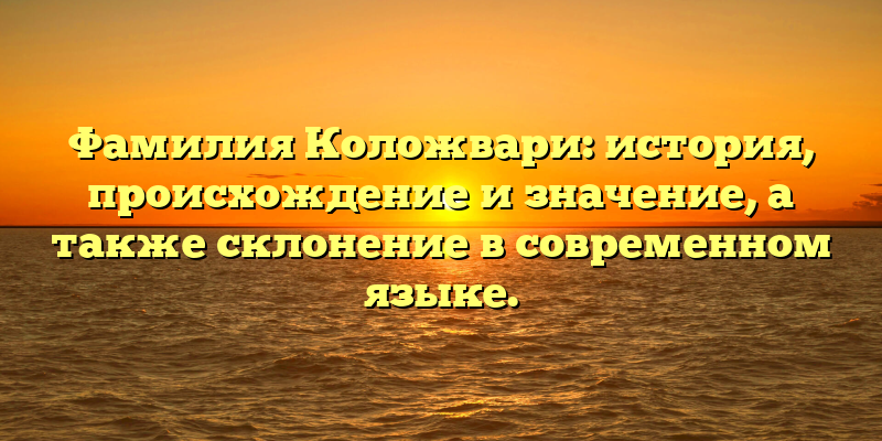 - Узнайте всё о фамилии Коложвари: происхождение, история и склонение в современном языке