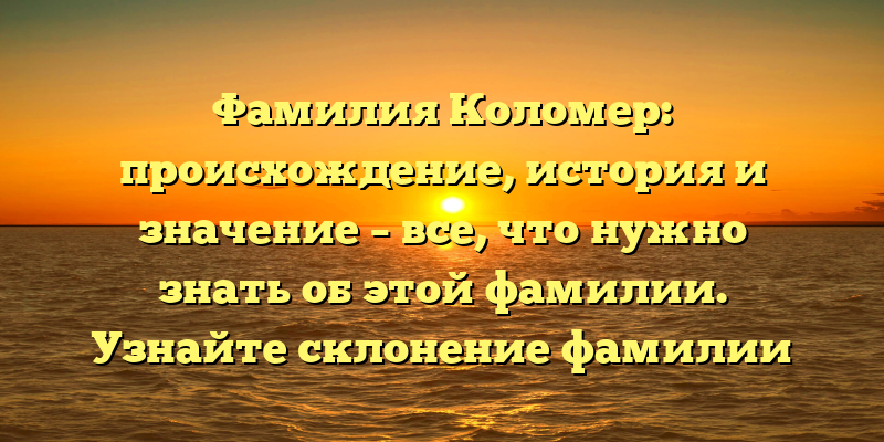 - Фамилия Коломер: происхождение, история и значение — все о ней и склонении в одной статье!