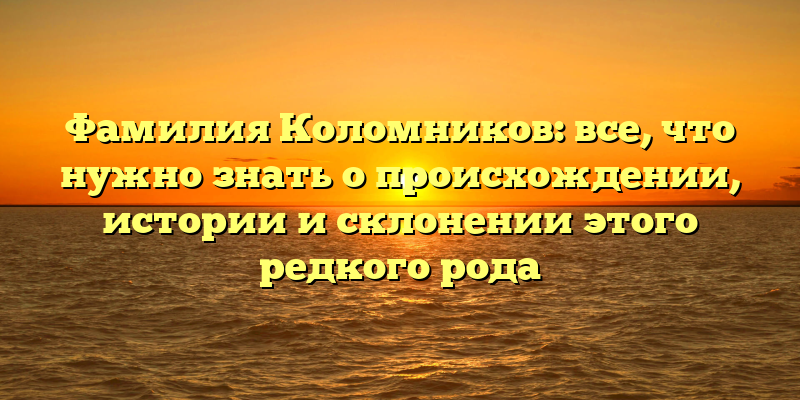 - Фамилия Коломников: исследуем происхождение, историю и склонение этого редкого рода