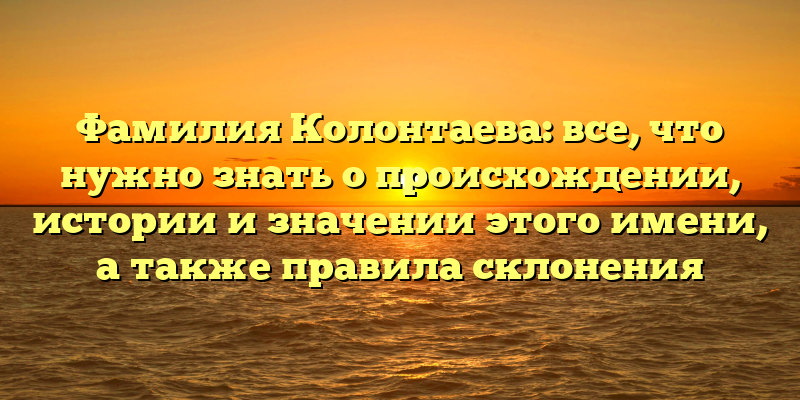 - Фамилия Колонтаева: происхождение, история и значение имени, а также правила склонения в одной статье