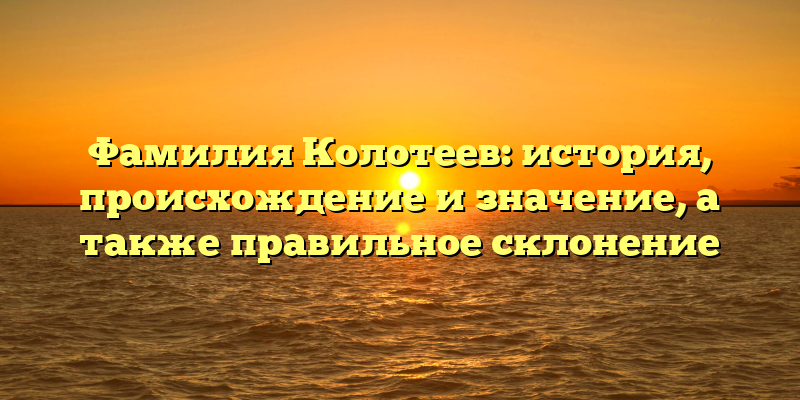Каждая фамилия имеет свою историю, которая говорит о происхождении и значении имени. В данной статье мы расскажем об одной из таких фамилий — Колотеев.