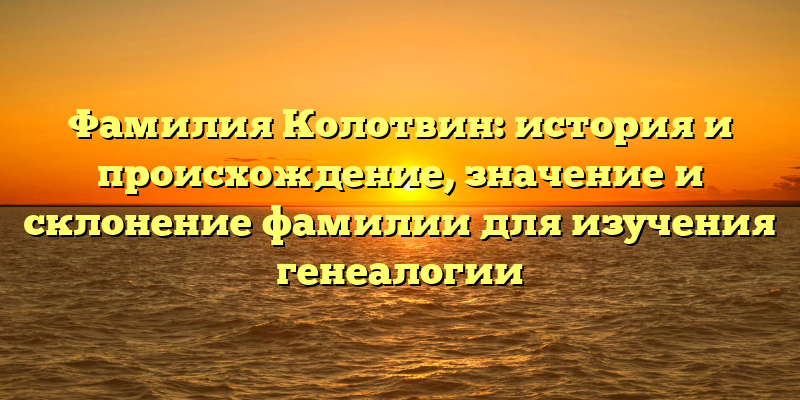 - Фамилия Колотвин: происхождение, значение и генеалогические аспекты изучения этой фамилии