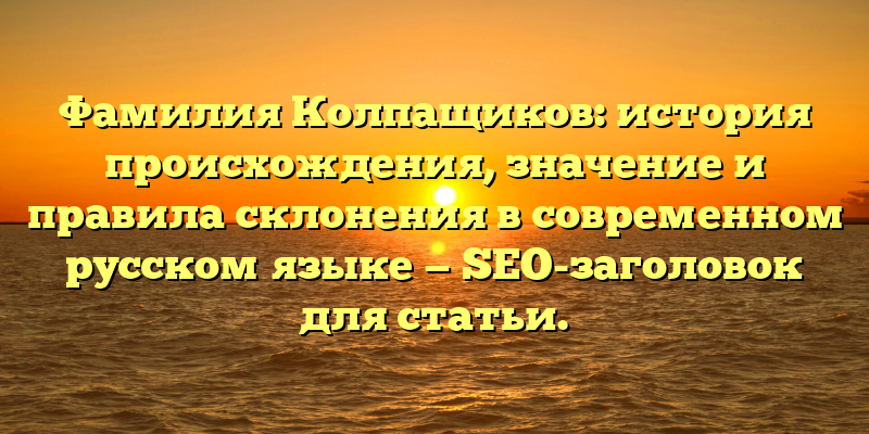 - Фамилия Колпащиков: происхождение, значение и склонение в русском языке — все о генеалогии семьи Колпащиков