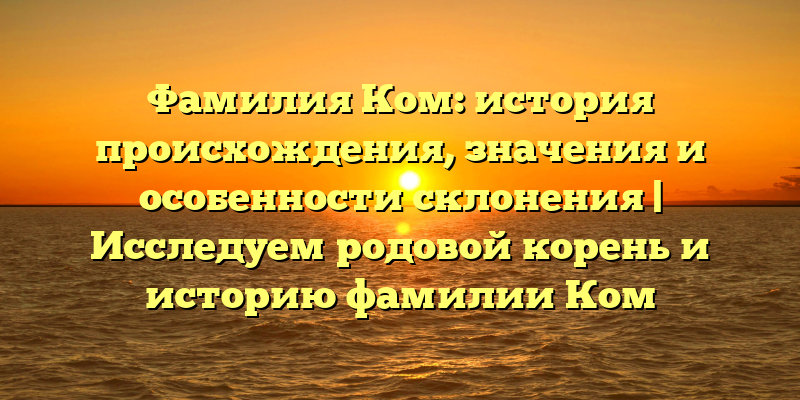 - Исследование фамилии Ком: происхождение, значения и правила склонения