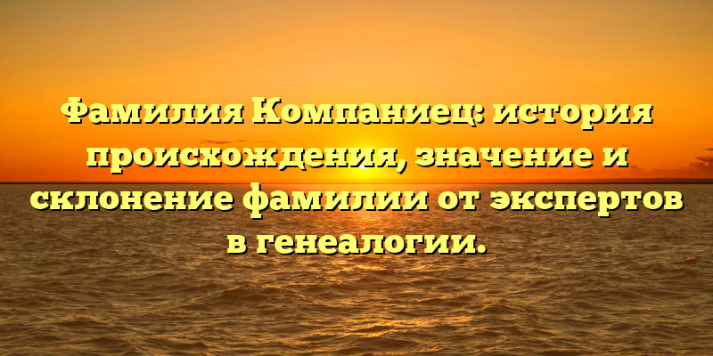 - Фамилия Компаниец: происхождение, значение и склонение — все, что нужно знать, советы экспертов в генеалогии