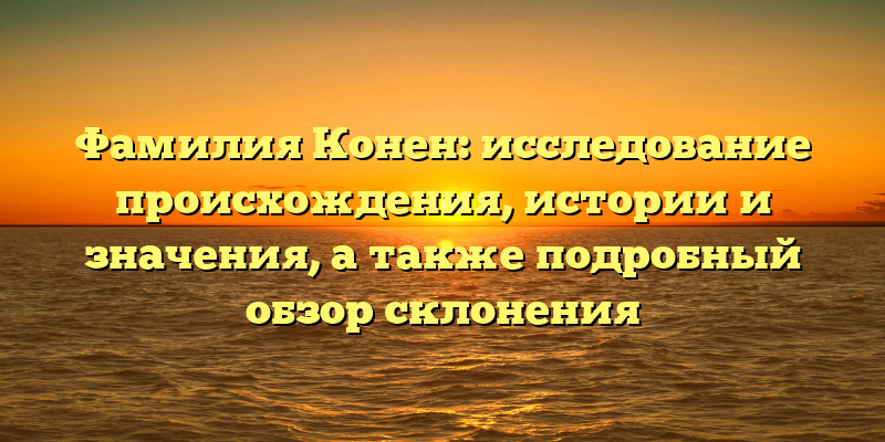 - Исследуем происхождение и историю фамилии Конен: подробный обзор склонения и значения