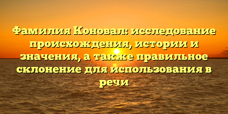 - Фамилия Коновал: исследование происхождения, истории и значения с рекомендациями по правильному склонению в речи