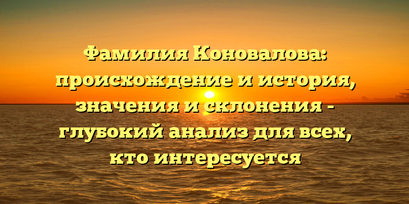 - Фамилия Коновалова: история, значения и склонения – глубокий анализ происхождения имени для всех, кто стремится узнать о своих корнях