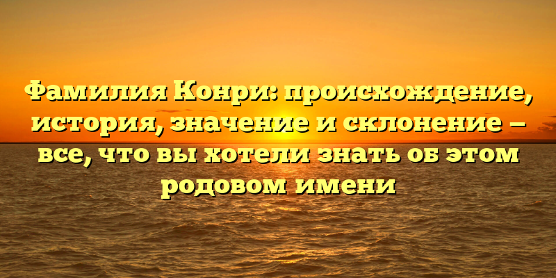 - Фамилия Конри: история, происхождение, значение и склонение в одной статье — все, что нужно знать об этом родовом имени!