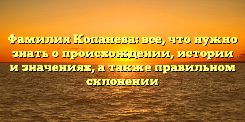 - Исследуем происхождение, историю и значения фамилии Копанева: правильное склонение и все, что вам нужно знать
