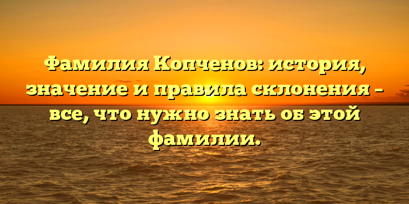 - Раскрываем тайны фамилии Копченов: происхождение, значения и правила склонения в одной статье!
