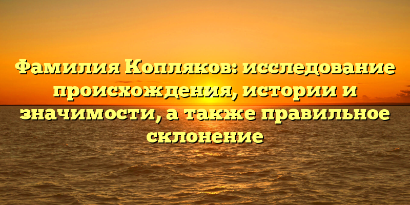От истории до правильного склонения: исследование происхождения и значимости фамилии Копляков