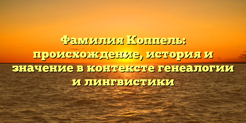 - Значение фамилии Коппель в контексте генеалогии и лингвистики