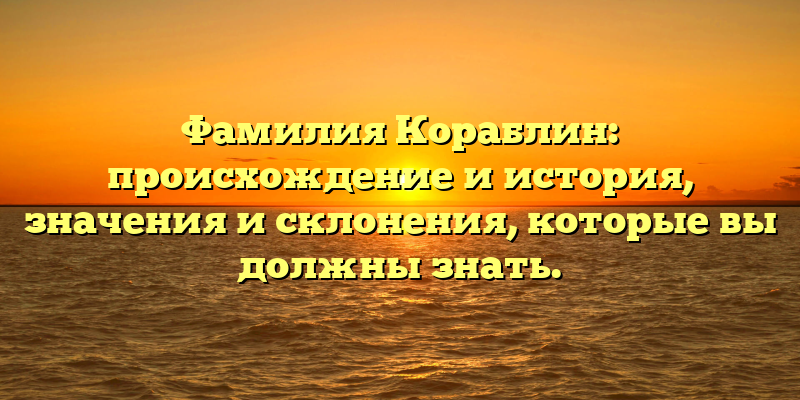 - Фамилия Кораблин: исследуем происхождение, историю и значения, которые обязательно узнать.