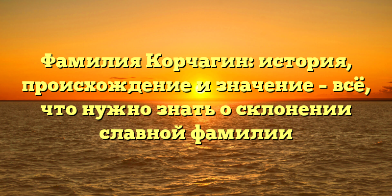 - Фамилия Корчагин: история, происхождение и значение — узнайте всё об этом знаменитом роде и правильном склонении его названия.