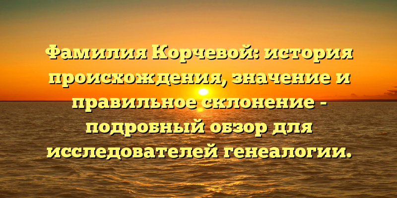 В этой статье мы рассмотрим подробную историю происхождения фамилии Корчевой, её значение и правильное склонение, а также предоставим исчерпывающую информацию для тех, кто занимается генеалогией и ищет своих предков.