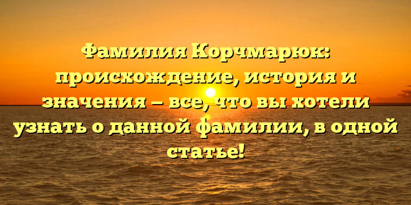 - Раскрываем тайны фамилии Корчмарюк: происхождение, история и значение в одной статье!