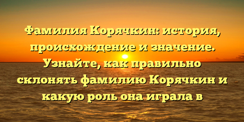 - Фамилия Корячкин: происхождение, история и правильное склонение. Познавательная информация о фамилии, которая играла важную роль в истории.