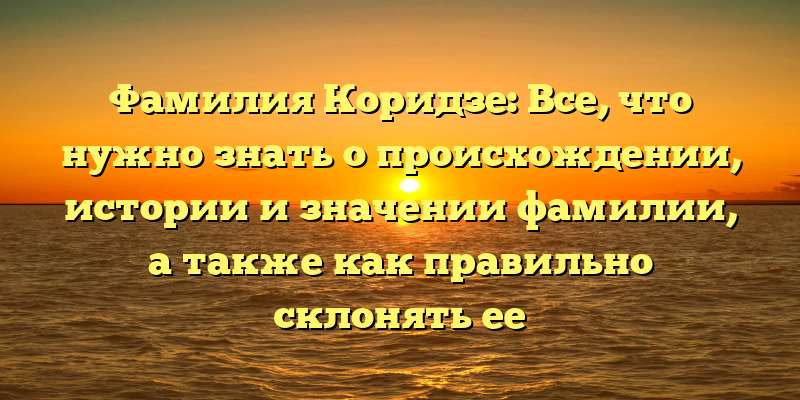 - Раскрываем тайны фамилии Коридзе: происхождение, история и значимость, а также простой способ правильно склонять