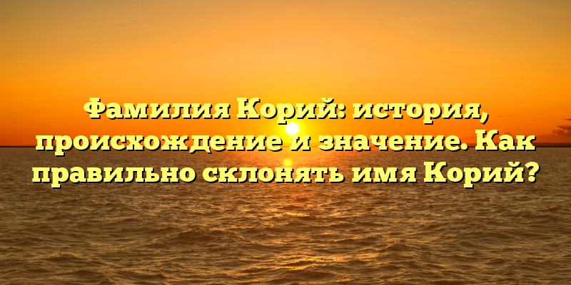 - Фамилия Корий: история, происхождение и значение. Узнайте, как правильно склонять это имя и расширьте свои знания о происхождении своей фамилии