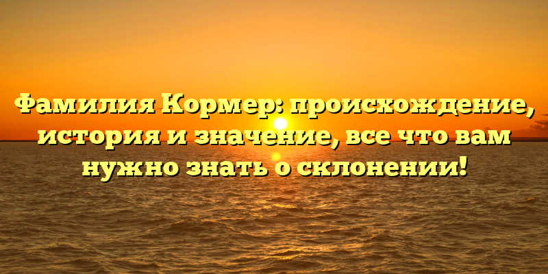 - Узнайте все о происхождении и значении фамилии Кормер: как правильно склонять историческое имя