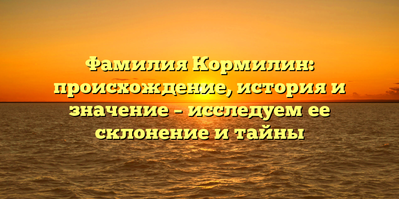- Раскрываем тайны фамилии Кормилин: происхождение, история и значение, а также склонение и интересные факты