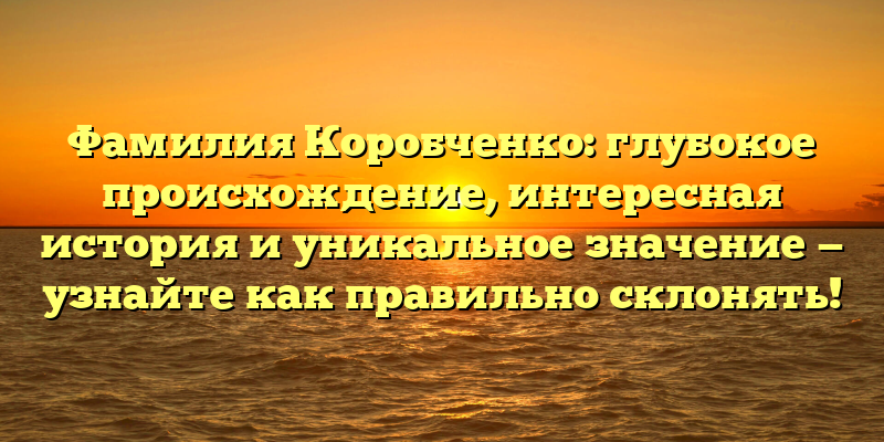 - Раскрываем тайны происхождения и истории фамилии Коробченко: уникальное значение и правильное склонение в одной статье