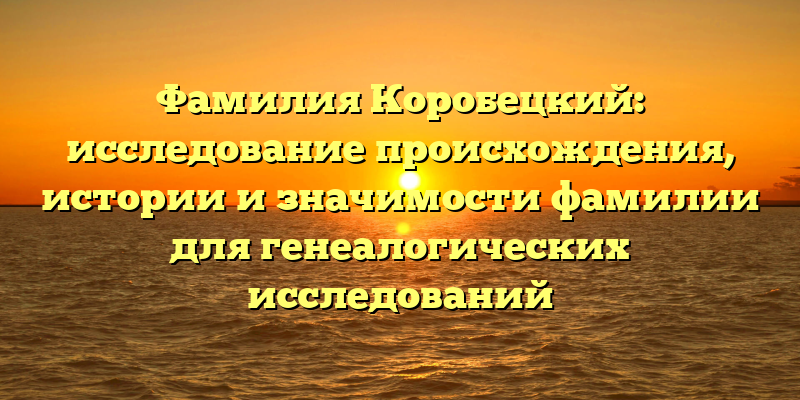 - Изучаем фамилию Коробецкий: история происхождения и значение для генеалогических исследований