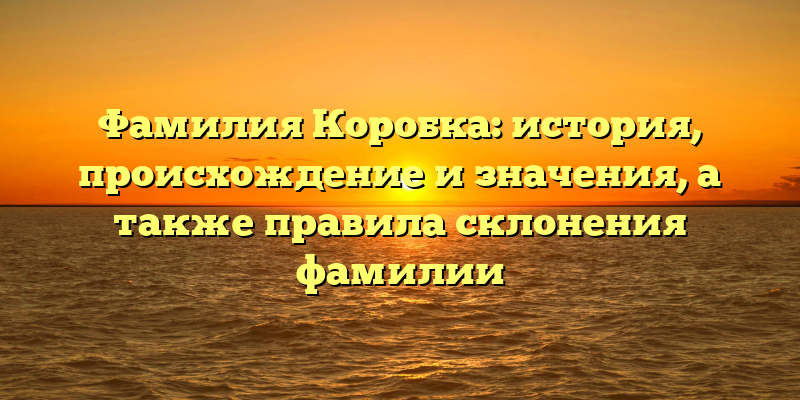 - Фамилия Коробка: происхождение, история и правила склонения — всё, что нужно знать!