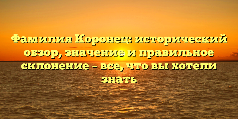- Фамилия Коронец: возникновение, значения и правильное склонение в исторической перспективе — подробный обзор