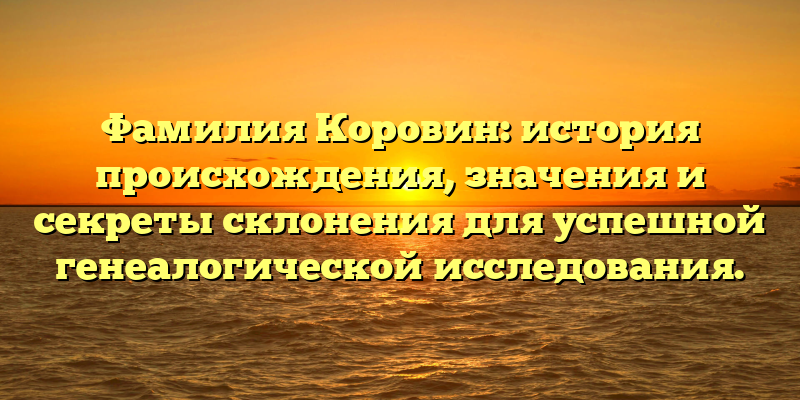 Коровин — распространенная фамилия, которая имеет довольно интересную историю происхождения. Эта фамилия имеет ряд значений и является объектом дальнейшего генеалогического исследования.
