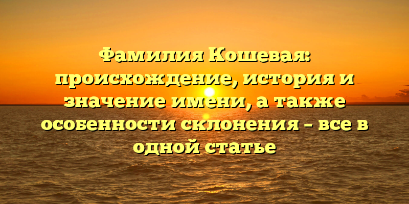 - История и происхождение фамилии Кошевая: узнайте все в одной статье, включая особенности склонения и значение имени!