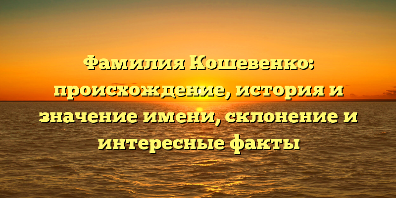 - Изучаем происхождение и историю фамилии Кошевенко: значение имени, правила склонения и увлекательные факты
