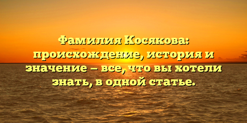 - Фамилия Косякова: история происхождения и значение – полный гид по генеалогии и истории