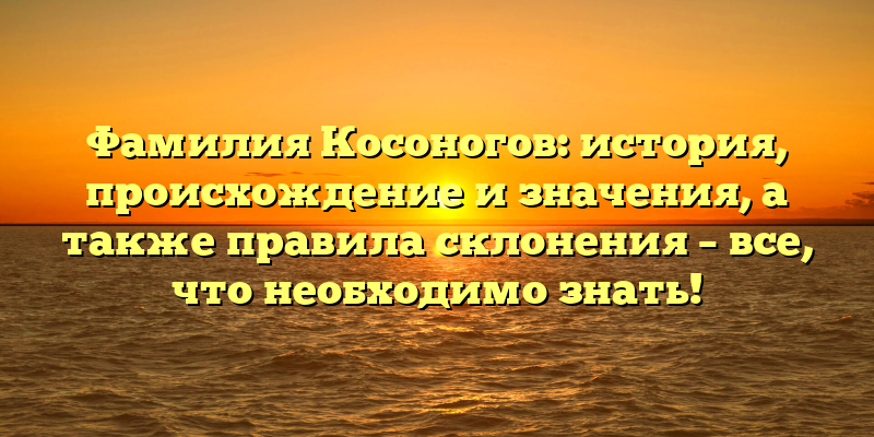 - Фамилия Косоногов: история, происхождение и значения, а также правила склонения — полное руководство для узнавания своих корней!