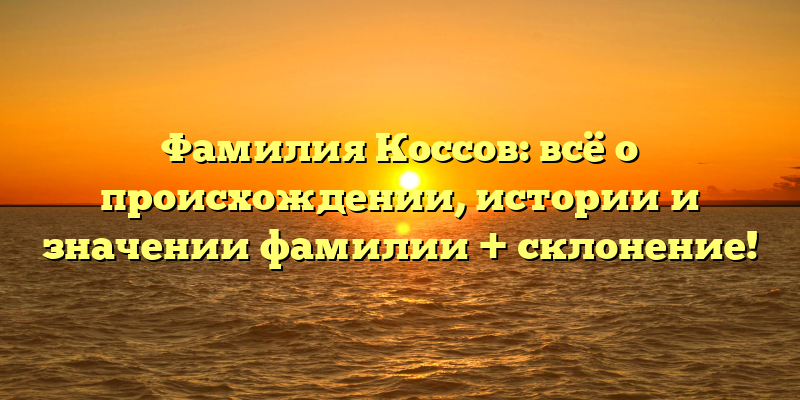 - Исследуем происхождение, историю и значение фамилии Коссов, а также узнаем правильное склонение!