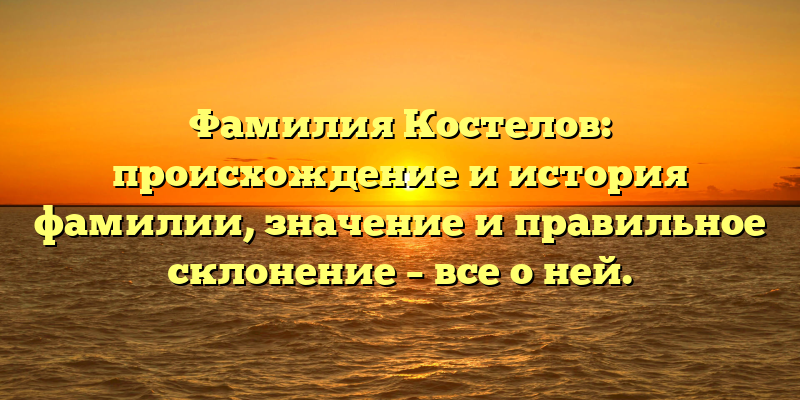 История и значение фамилии Костелов: правильные склонения и всё, что нужно знать о происхождении этой фамилии